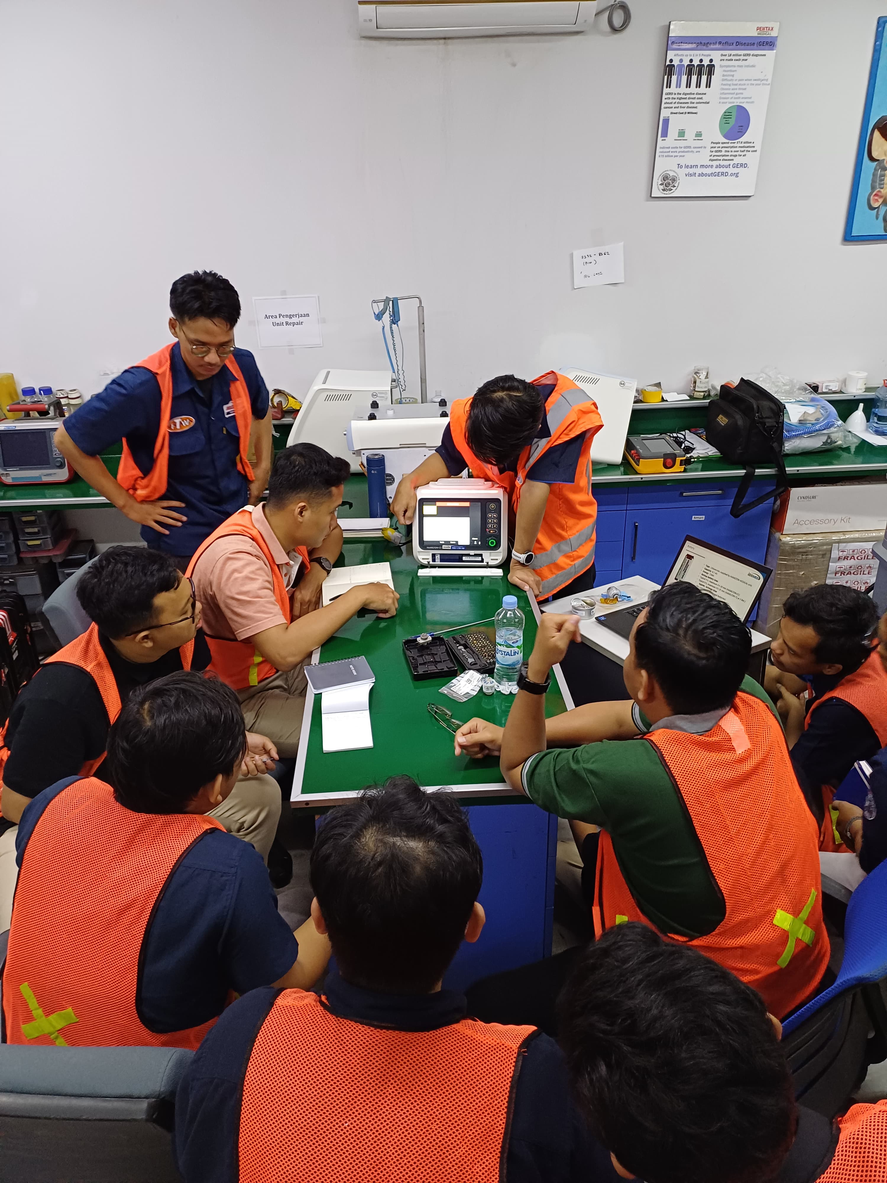 After gaining insights from the HR Team, the engineers proceeded to Logos for a two-week technical training conducted by the seniors of BME. Starting on 22 January, the engineers delved into various topics such as ventilators, treadmills, aesthetic lasers, sterilisers, patient simulators, and more. The training sessions were led by the technical support team and experienced senior engineers with expertise in these machines. The participants not only acquired theoretical knowledge but also actively engaged in tasks assigned by their mentors.