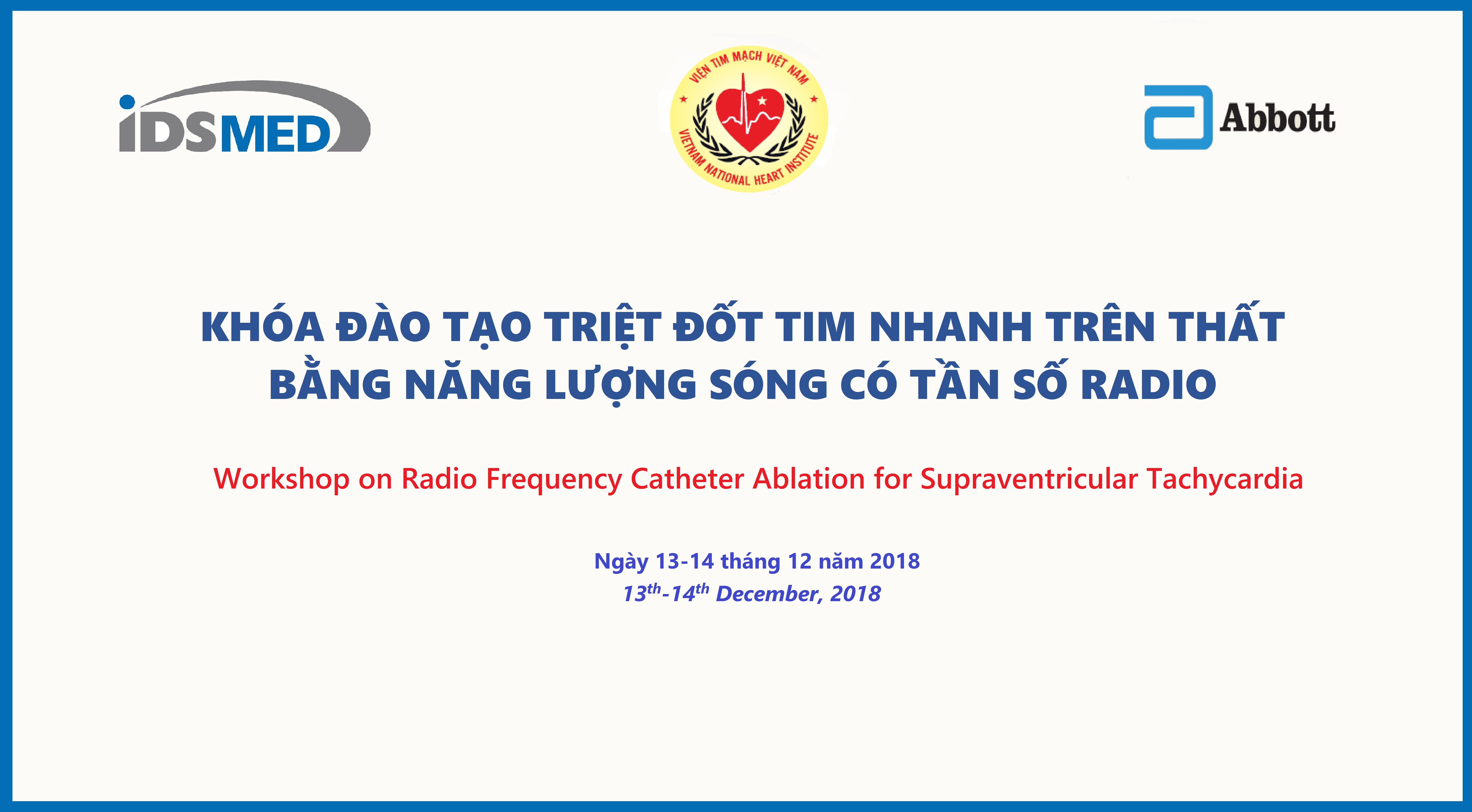 Tiếp nối chuỗi sự kiện đào tạo nhằm nâng cao công tác chuyên môn của các bác sĩ, Viện tim mạch Việt Nam phối hợp với công ty idsMED và nhãn hàng Abbott tổ chức Khóa đào tạo triệt đốt tim nhanh trên thất bằng năng lượng sóng có tần số Radio. Khóa đào tạo sẽ có sự tham gia của các học viên đến từ các nước như Indonesia và Ấn Độ.